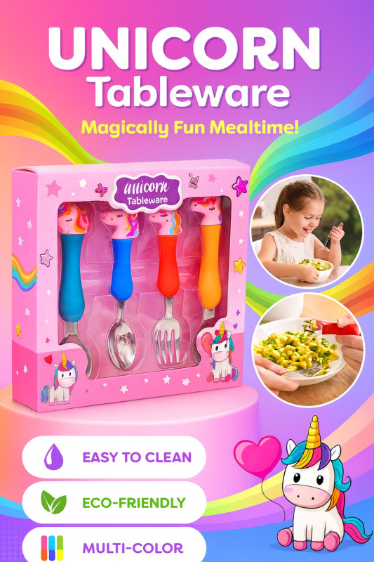Make mealtime magical with this adorable Unicorn Tableware Set! Designed especially for kids, this set includes a spoon, fork, and knife with colorful, ergonomic handles topped with cute unicorn designs. Crafted from premium SUS 304 stainless steel and eco-friendly, BPA-free materials, it ensures both safety and durability.