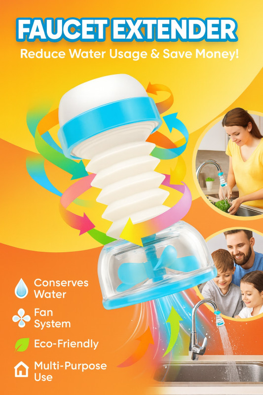 Transform your kitchen or bathroom sink with this eco-friendly faucet extender. Designed with a built-in fan system, it not only improves water flow but also helps reduce water usage by up to 30%, saving you money while protecting the environment.