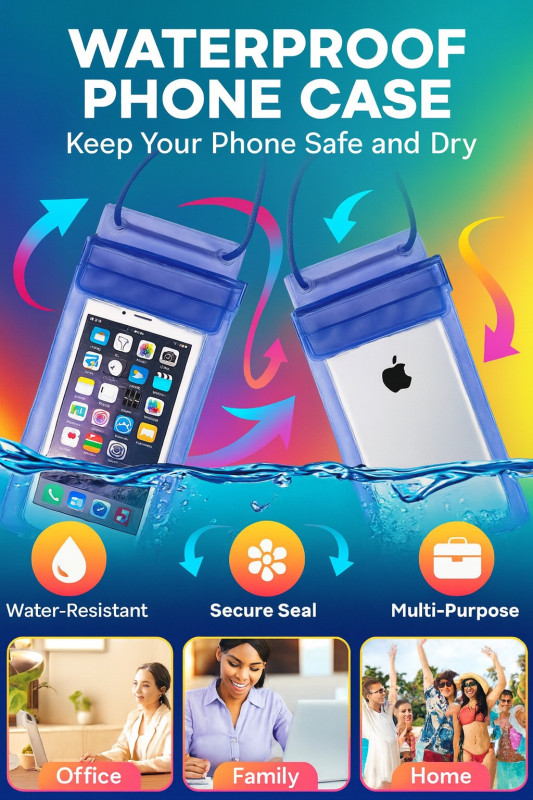 Never worry about water, splashes, or spills again! Our Waterproof Phone Case is designed to keep your smartphone 100% safe, dry, and secure – whether you’re at the pool, beach, office, or outdoors.