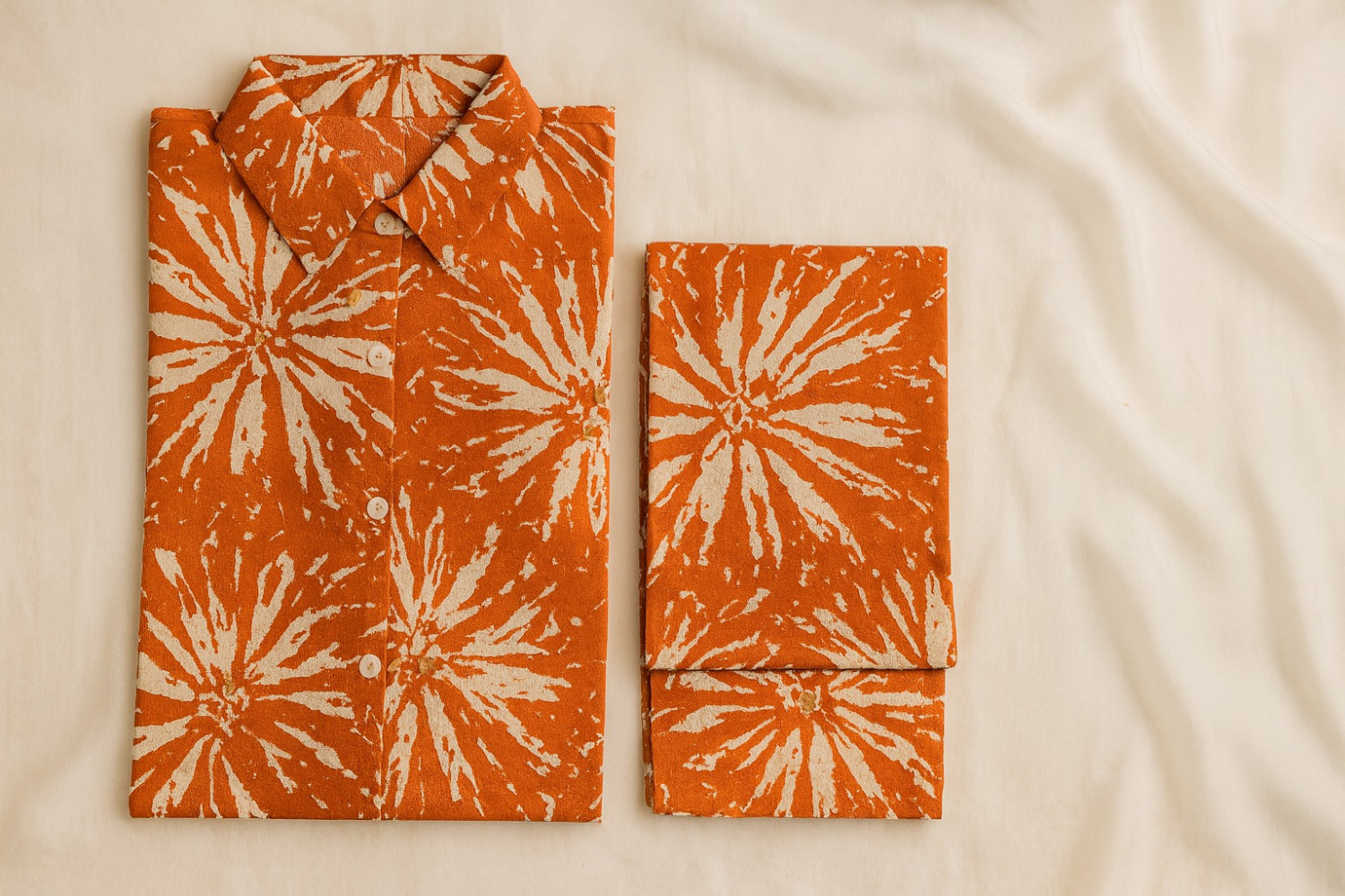 The all-over bold white burst floral print on a vibrant orange base adds a lively and eye-catching appeal. It comes with matching straight-fit pants, making it a complete outfit suitable for casual outings, office wear, or daily comfort.