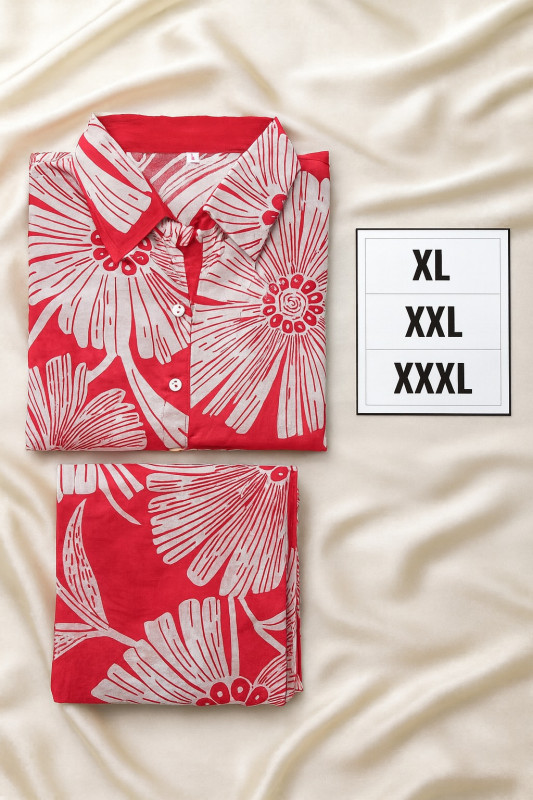 Brighten up your ethnic wardrobe with this bold and vibrant red kurta set, designed with oversized floral motifs that make a striking style statement. Made from breathable cotton fabric, this set is ideal for casual wear, daily outings, or office wear, ensuring both comfort and style.